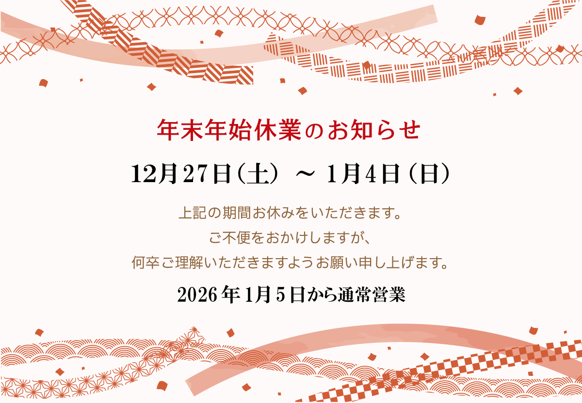 弊社は、年末年始休業日を下記の通りとさせていただきます。